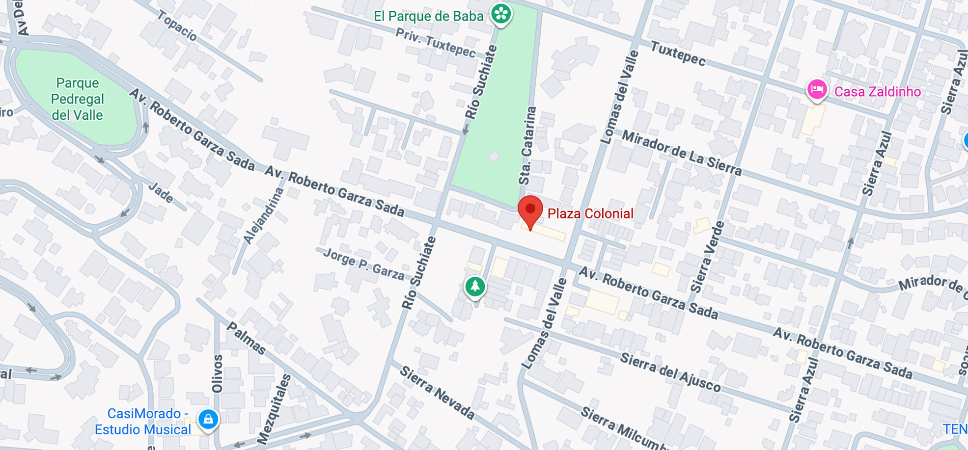 Plaza colonial 1500A local 16B, Av. Roberto Garza Sada 111, Esq, Lomas del Valle Col, Lomas del Valle, 66256 San Pedro Garza García, N.L.
